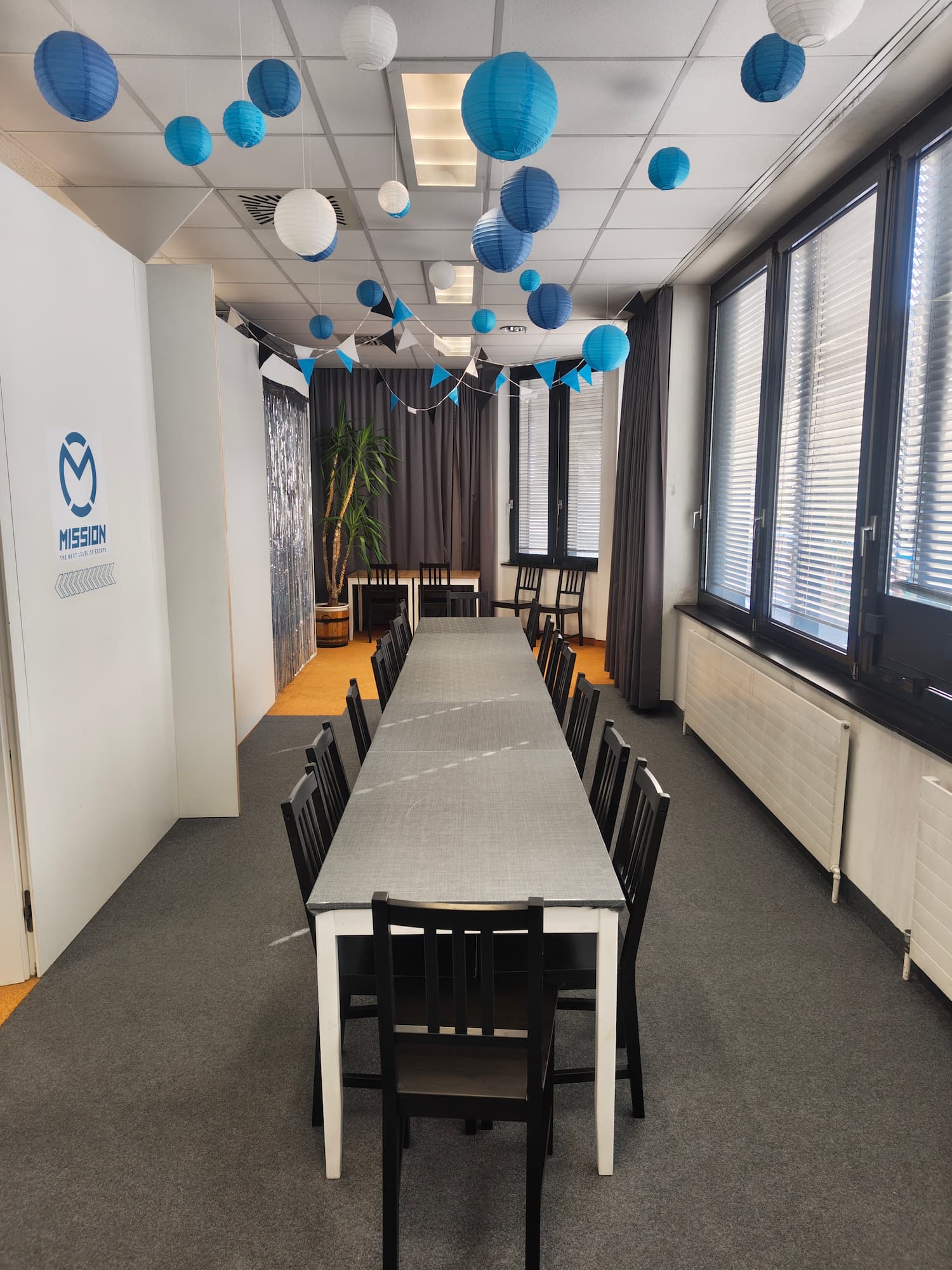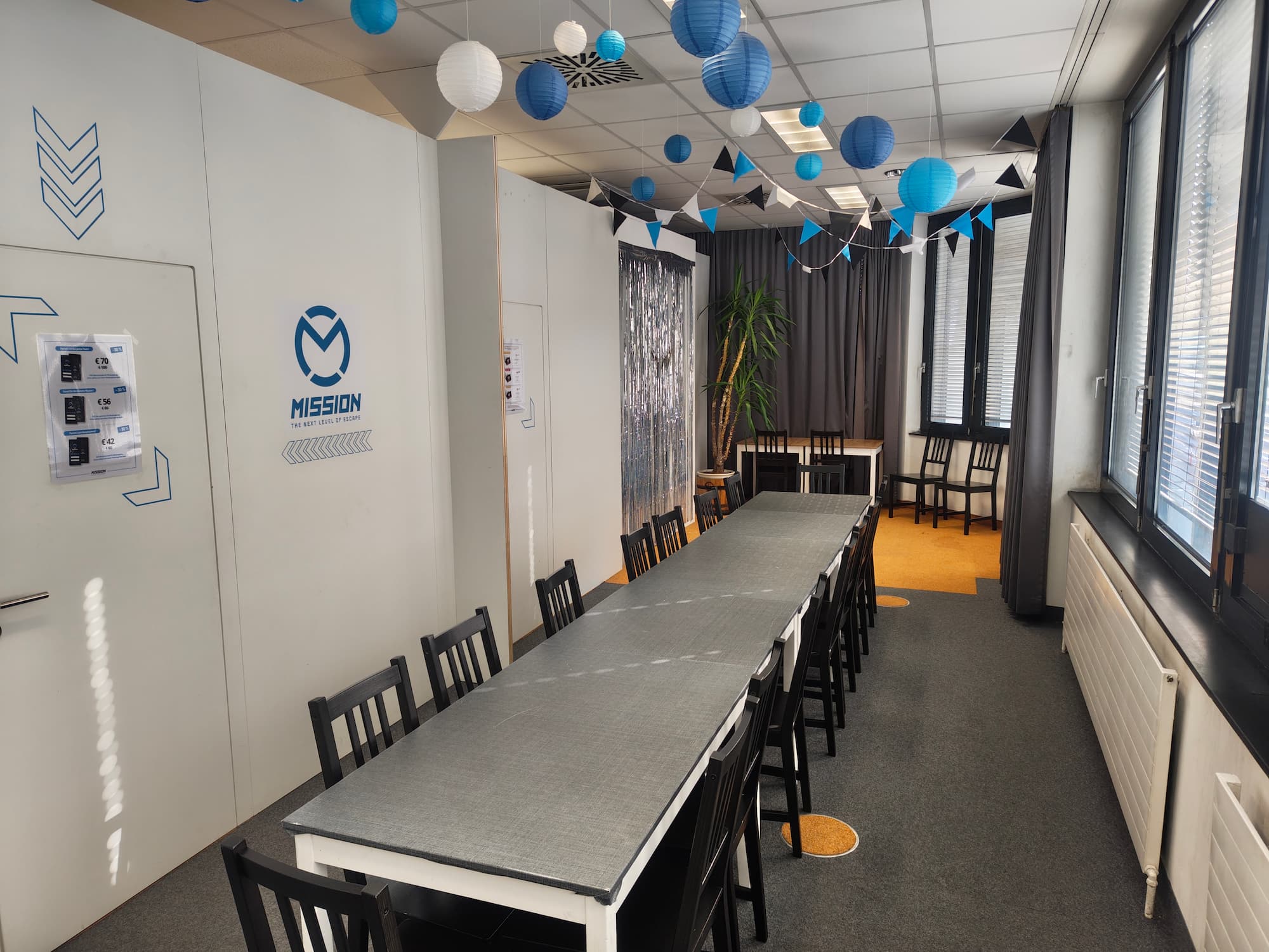 Unser Partyraum ist perfekt geeignet für Geburtstags-, Familien oder Firmenfeiern. Bis zu 20 Personen haben dort exklusiv mehr als genug Platz um vor oder nach dem absolvieren der Mission Games gemeinsam zu essen, feiern oder einfach nur eine schöne Zeit zu verbringen.
